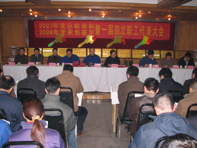 2月4日上午,公司四樓會議室洋溢著節(jié)日的喜慶。公司2007年度總結表彰、2008年承包合同簽字暨第一屆四次職工代表大會在這里隆重召開。公司領導侯向保、馮安民、宋元祥、李建軍、鄭小立、王翔順、王建華、任順戰(zhàn)、任忠民和全體中級管理人員,2007年度“勞動模范”、“模范黨員”及職工代表、各團支部書記等近200人參加會議。會議由公司黨委副書記馮安民主持。